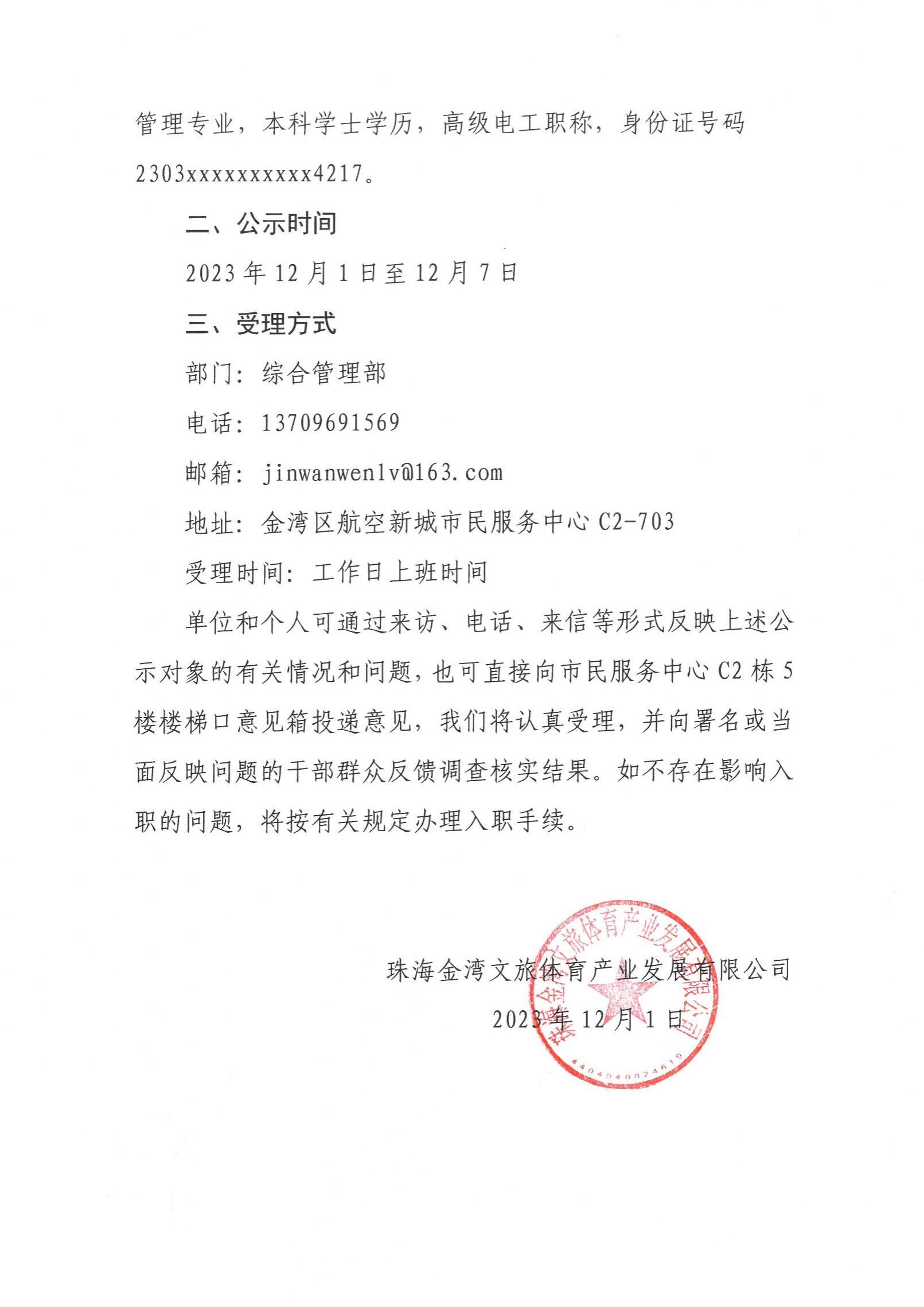 珠金文旅〔2023〕41號(hào) 關(guān)于擬聘用人員的公示