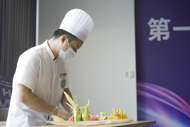 參與環(huán)境技能展示的13位員工來自公司各個項目,12名保潔人員展示了日常工作禮儀,塵推技能,來自規(guī)劃館飯?zhí)玫膹N師江火明現(xiàn)場制作了精美的果盤,得到了評委和觀眾一致好評。